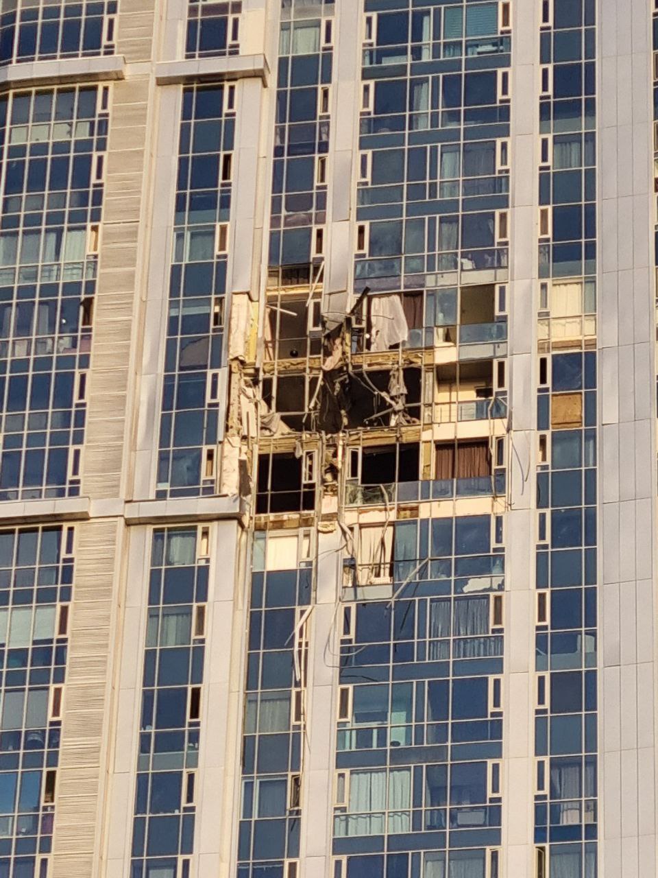 По данным 112, пострадали два человека, они находятся в тяжелом состоянии. В самом высоком здании города повреждено несколько квартир. На месте работают экстренные службы.