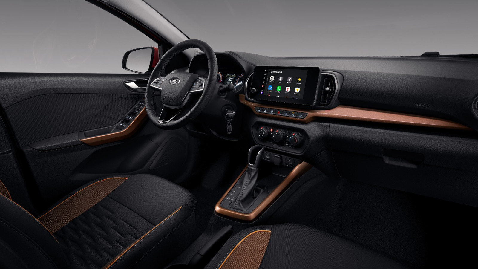 Следующей версии, Life, положены кондиционер, подогрев передних сидений и обогрев наружных зеркал. Далее следует исполнение Enjoy с обогревом форсунок омывателя, круиз-контролем, охлаждаемым вещевым ящиком, регулировкой рулевой колонки по вылету и информационно-развлекательной системой Lada Enjoy Evo, которая включает в себя онлайн-сервисы Яндекса и доступ в интернет.