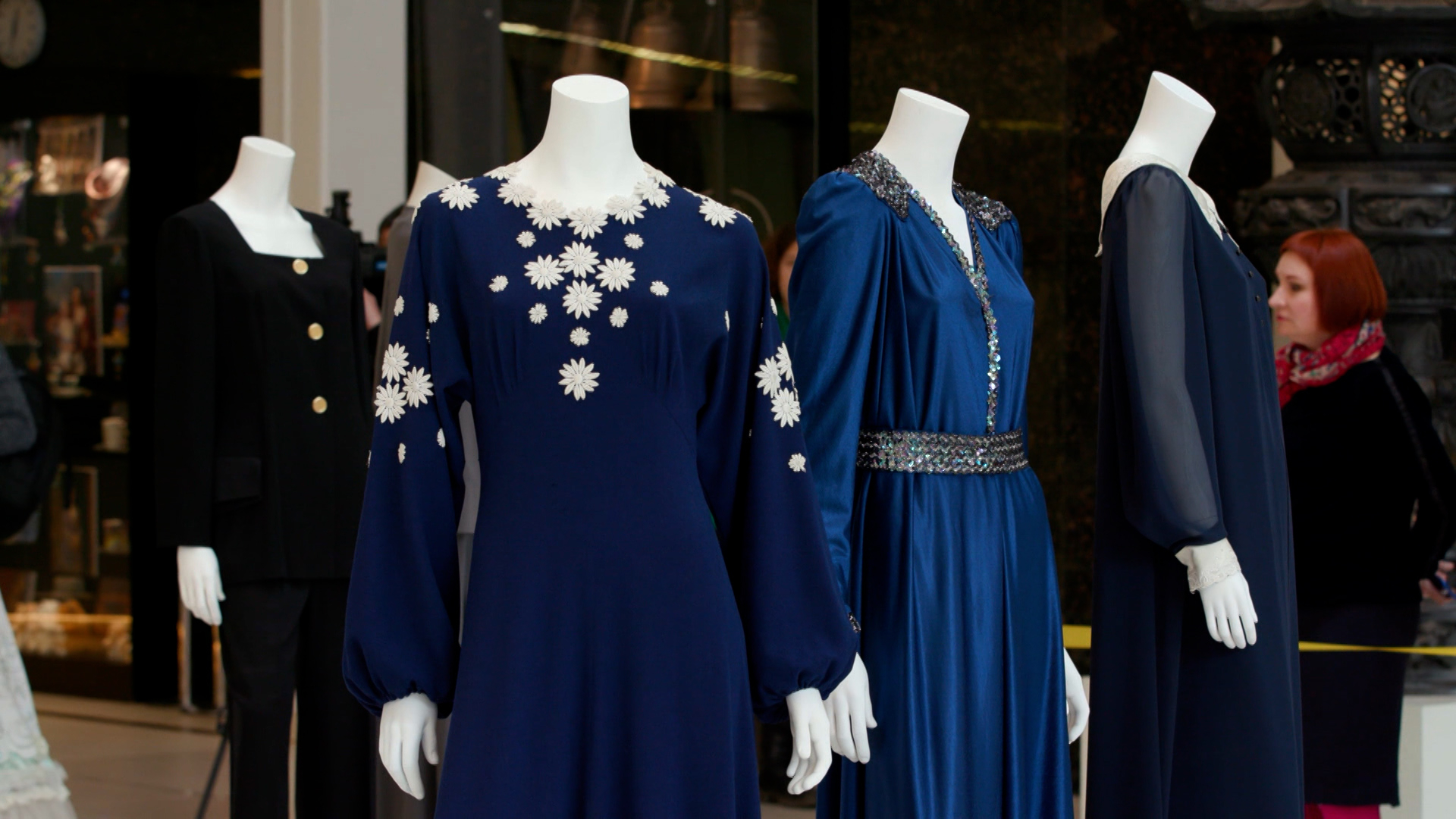 Это синее платье с белыми цветами создал Вячеслав Зайцев. А отреставрировала и создала нечто похожее — Ирина Танцурина. Сотрудничество Эдиты Пьехи и ленинградского модельера длилось почти 30 лет. За один концерт, вспоминает дизайнер, певица сменяла не менее 6 нарядов. Один из самых узнаваемых образов — голубое платье для песни «Дунай».