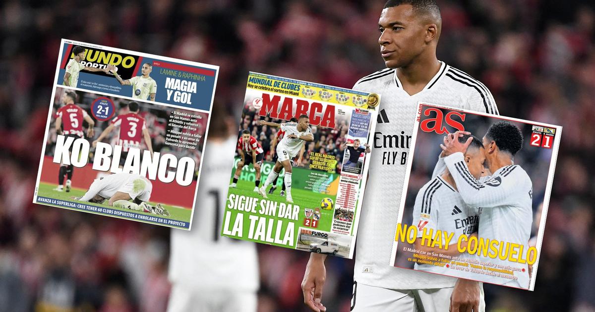 Enfin, les médias catalans Mundo Deportivo et Sport titrent respectivement «KO Blanco» et «Quel désastre». En effet, rien est allé dans le sens du Real Madrid lors de la défaite à Bilbao où Kylian Mbappé aurait pu passer comme un héros en donnant le premier but égalisateur aux Merengue. Il reste encore quelques matchs au joueur français pour inverser la tendance avant la trêve hivernale, qui sera sûrement accueilli avec grand plaisir par Mbappé après un départ compliqué avec son nouveau club.