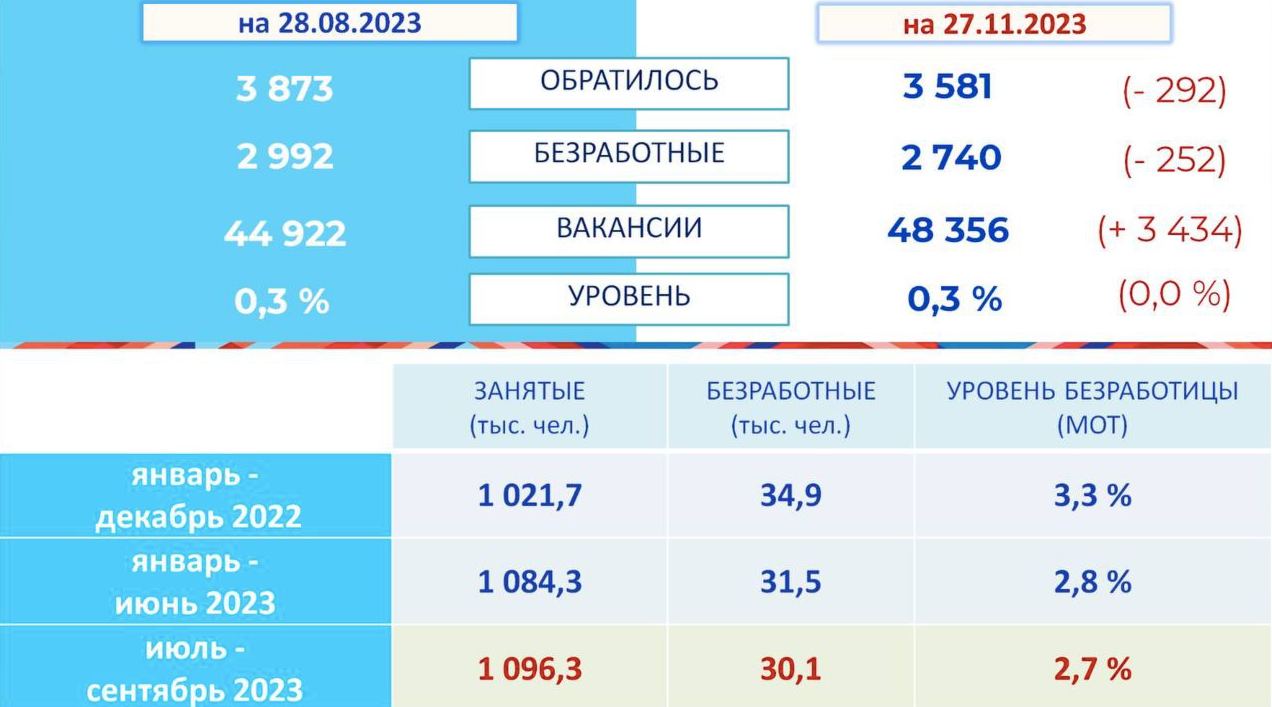 💬«С начала года численность занятых в экономике Ленинградской области увеличилась на 74,6 тысяч человек. Уровень регистрируемой безработицы в регионе уже несколько месяцев остается одним из самых низких в стране и держится на уровне 0,3%. Уровень общей безработицы по данным Петростата составляет 2,7% – на 0,6% ниже, чем в начале 2023 года», – рассказала председатель комитета по труду Алла Астратова.