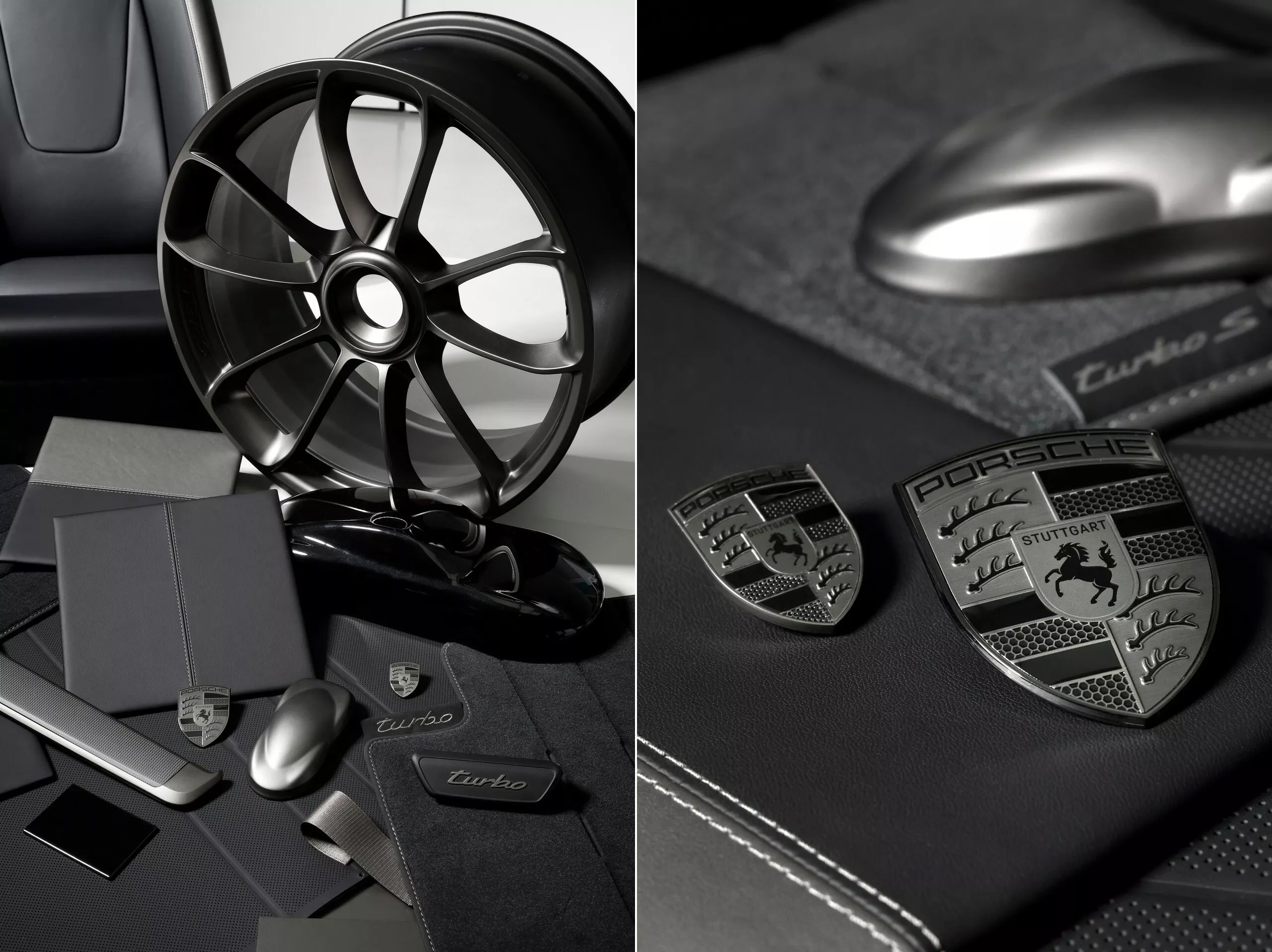 Обновлённый логотип у версий Turbo теперь будет отличаться: для него подразделение Porsche Color & Trim разработало новый цвет, которому дали название Turbonite. Эмблему затемнили: золотисто-красное сочетание у неё заменено на «металлический серый» оттенок, идущий в комплекте с чёрным цветом.