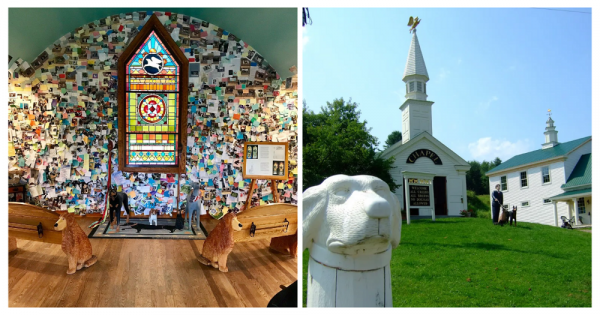 Так вершине Собачьей горы (Dog Mountain), расположенной на его ферме в Сент-Джонсбери, штат Вермонт, появился уникальный храм без догм, но с крылатым лабрадором на шпиле.