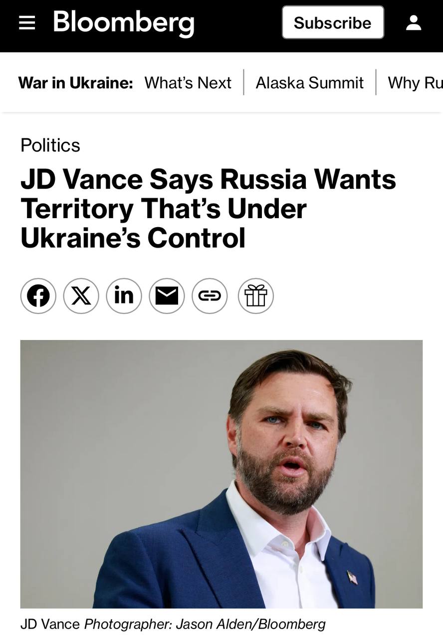 «Вице-президент Джей Ди Вэнс заявил, что переговоры о прекращении войны России на Украине сосредоточены на гарантиях безопасности для Украины и территорий, которые Россия хочет контролировать, включая украинские территории, которые Россия еще не захватила, в то время как США пытаются выступить посредником в мирном Bloomberg соглашении между двумя странами.