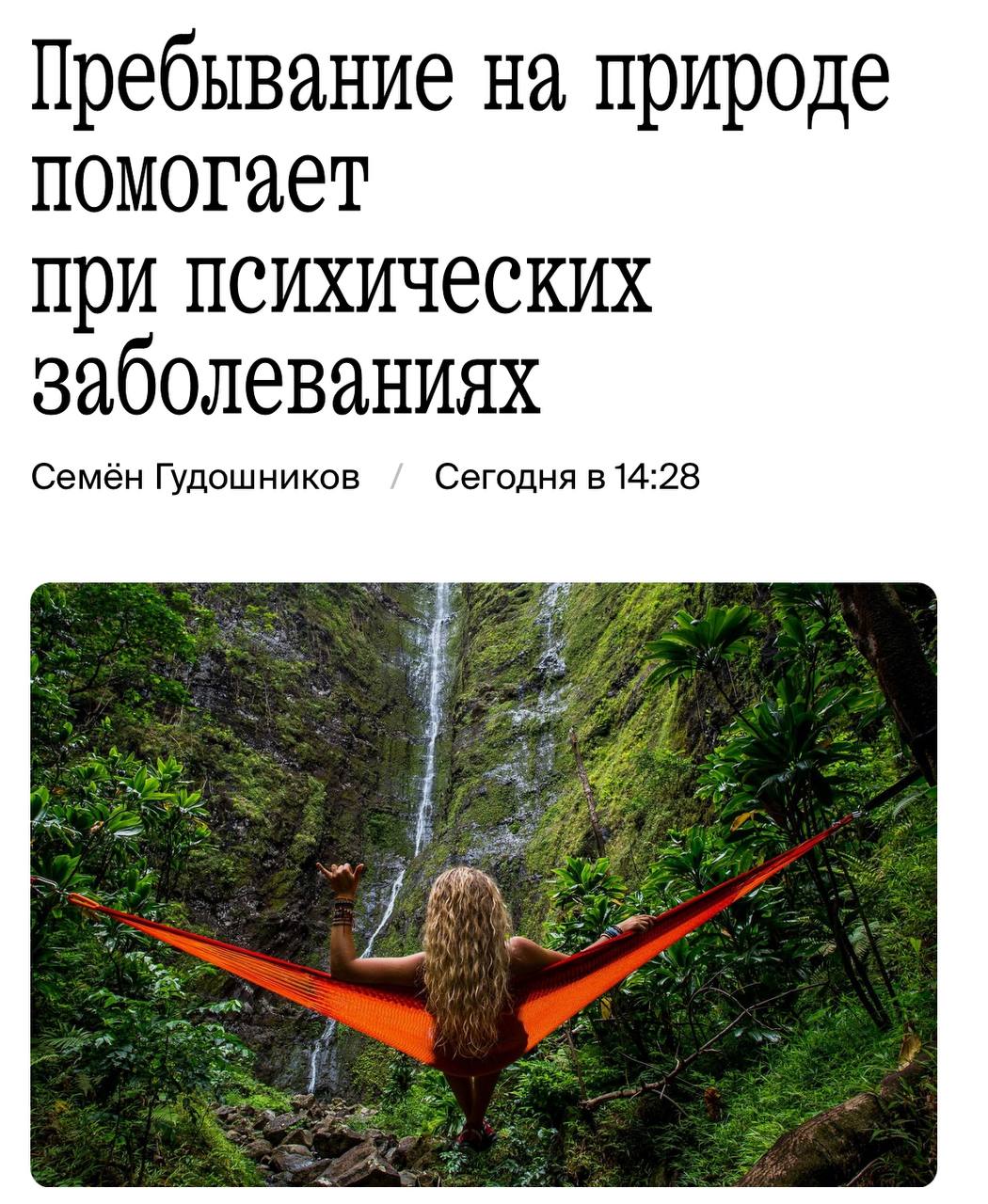 При этом тип местности не сильно влияет на результат — подойдёт и парк, и водоём, и горы, и лес, и ферма. Больше всего пребывание на природе помогало людям с расстройствами настроения и стрессом.