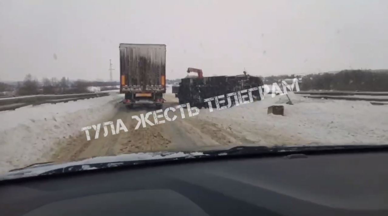 Сегодня, в посёлке Сергиевский Киреевского района, на 14-м километре трассы Тула-Новомосковск, произошло ДТП с участием большегруза. Информацию об инциденте сообщили очевидцы в telegram-канале «Тула Жесть».