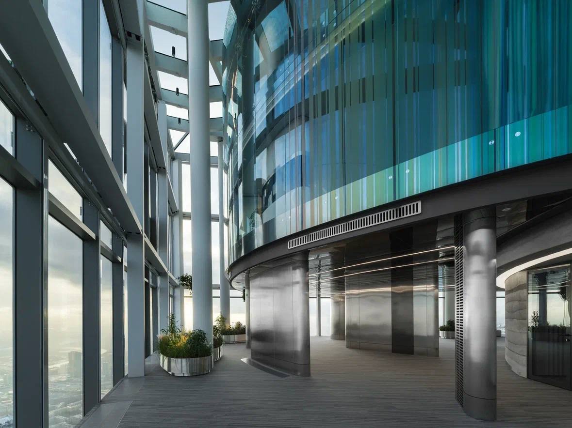 Трехуровневое пространство «F-375» площадью 2 642 кв. м, которое реализует компания AEON CITY ESTATE, расположено на 95 этаже башни «Восток» под огромным стеклянным куполом высотой 14 метров. Благодаря панорамному остеклению с высоты 360 метров открываются впечатляющие виды на Москву. Кремль, Садовое кольцо, Арбат, Поклонная гора, Воробьёвы горы и МГУ, Москва-река – все красоты и достопримечательности столицы отсюда видны как на ладони. Этот офис, пожалуй, то самое место в столице, где горизонты становятся практически безграничными.