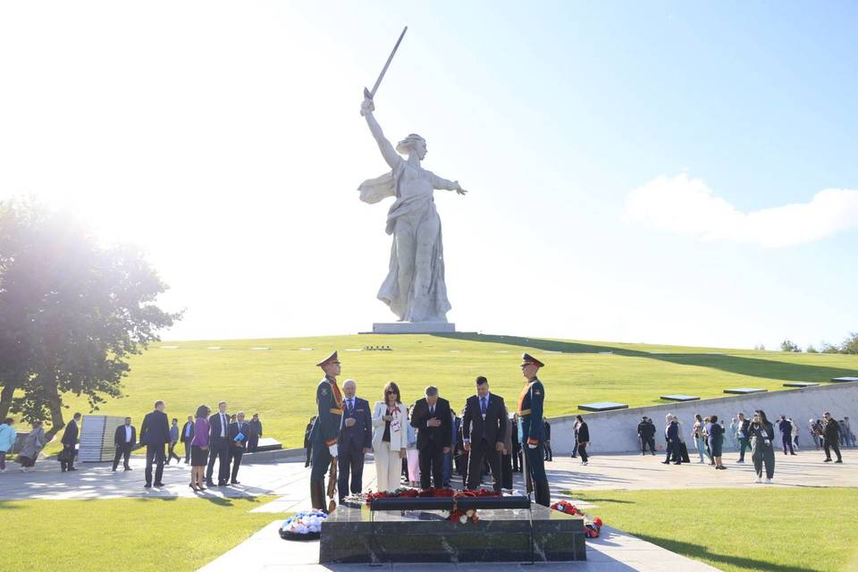 Члены делегаций почтили память защитников Родины, возложив цветы к военным мемориалам у Вечного огня на Аллее Героев и на Мамаевом Кургане. Участники форума отдали дань памяти героям минутой молчания.