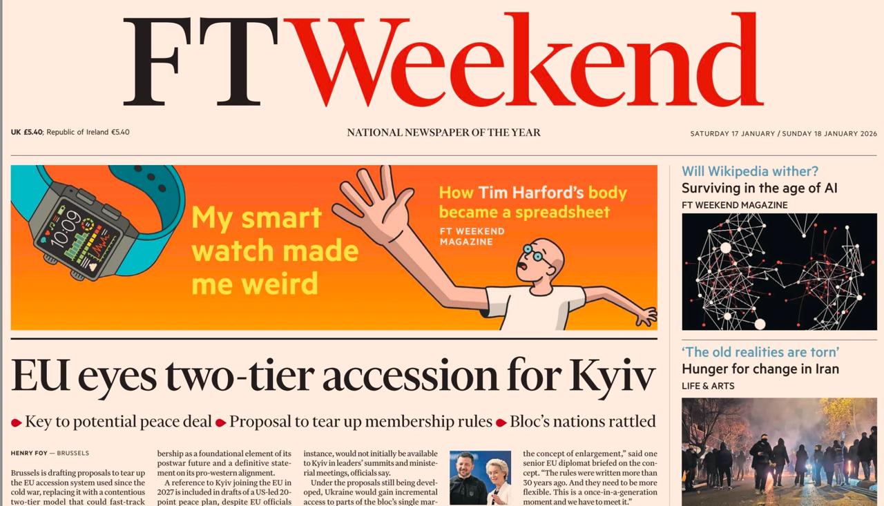Financial Time сегодня с первой полосы сообщает о разрабатываемом в Брюсселе плане приема Украина в ЕС «на полшишечки». И тут же приводит мнение некоего дипломата о том, что это - «коварный план Трампа и Путина для раскола ЕС»!