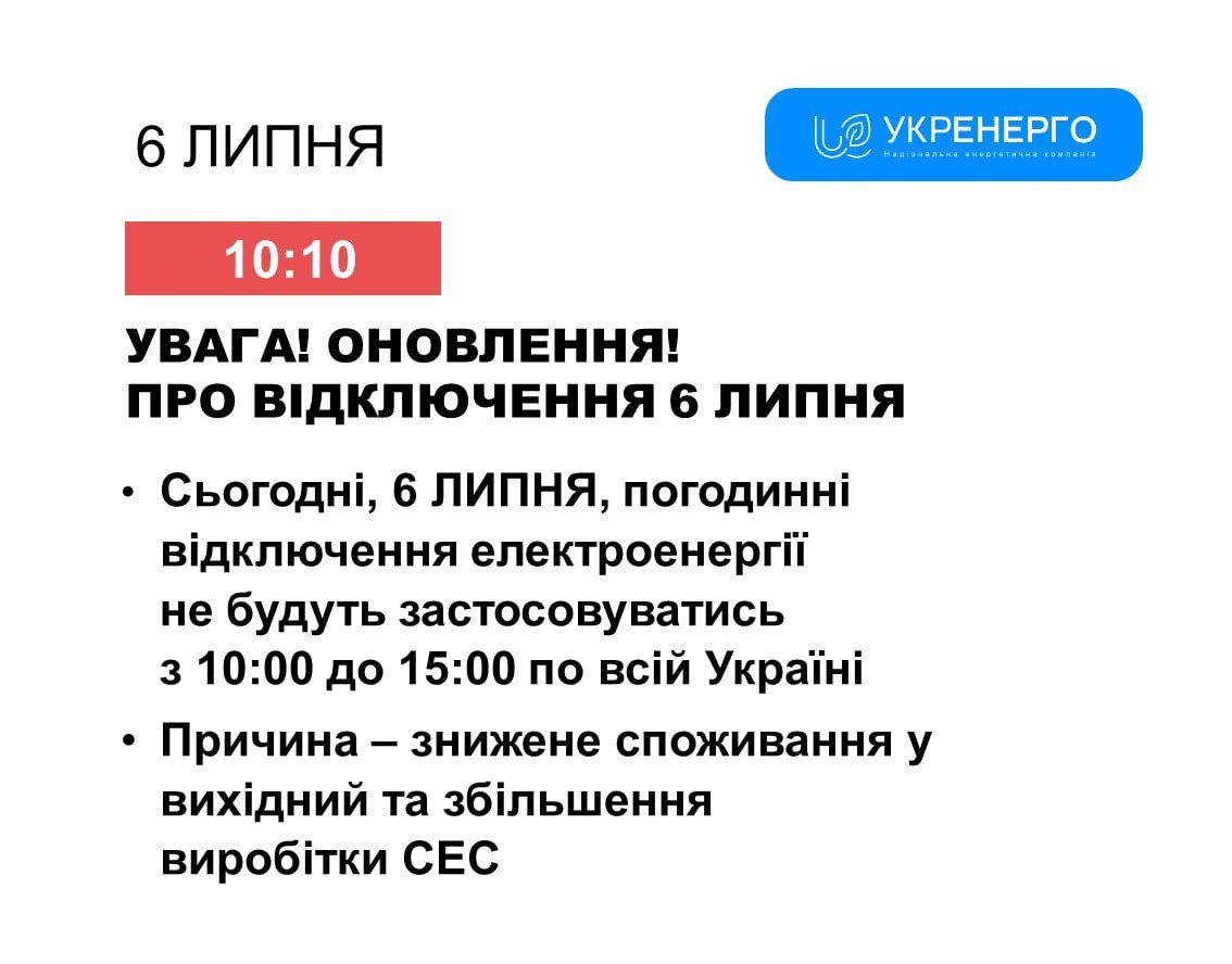 Сегодня свет отключать не будут по всей Украине с 10:00 до 15:00