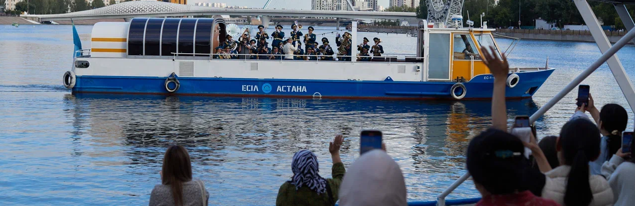 В Астане музыканты Нацгвардии дали концерт на борту речного трамвая. Шоу прошло в рамках фестиваля «Әскери керней», посвящённого Дню столицы.