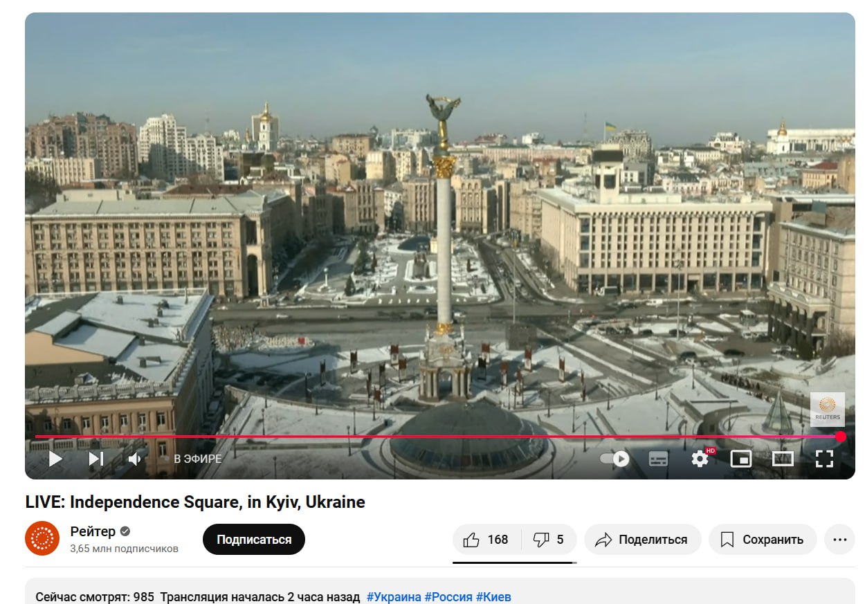 Агентство Reuters установило камеру на площади Независимости в Киеве и ведет прямой эфир
