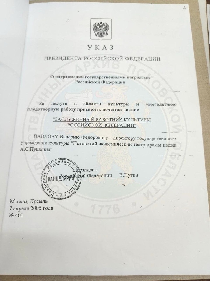 Представители регионального Союза театральных деятелей отметили, что для Пскова наследие, которое оставил Валерий Павлов, невозможно переоценить.