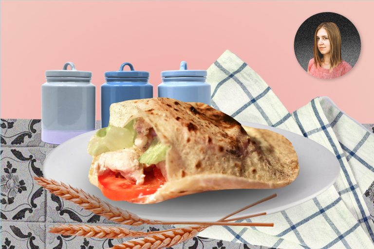 Каждую неделю Даша Полещикова готовит новое блюдо и рассказывает, что получилось. На этот раз она тестировала рецепт питы. Это лепёшка из пресного теста, которая надувается во время выпечки. Благодаря этому получается удобный кармашек для начинки.