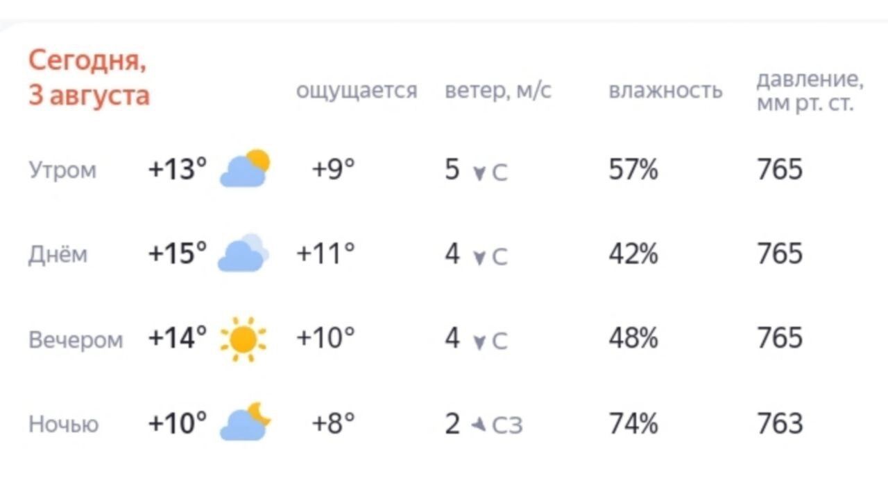 В воскресенье, 3 августа, средняя температура в Югре составил +24…+19 градусов. В южной и западной частях возможно потепление до +26 градусов. Будет переменная облачность, без осадков. Ветер — северо-западный с переходом в северный, 7-12 м/с.