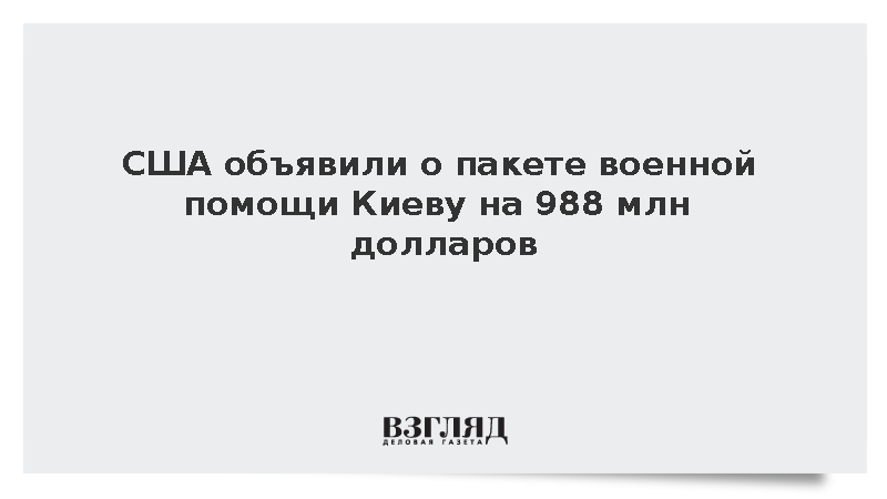 Позднее Пентагон подтвердил, что «объявил о значительном новом пакете помощи в области безопасности», который «предусматривает дополнительные 988 млн долларов». Указывается, что средства обеспечат через программу по закупке новых вооружений, списания со складов американской армии не будет. В пакет включили боеприпасы для РЗСО HIMARS, беспилотники, оборудование и запчасти для ремонта и обслуживания артиллерии, танков и бронетехники.