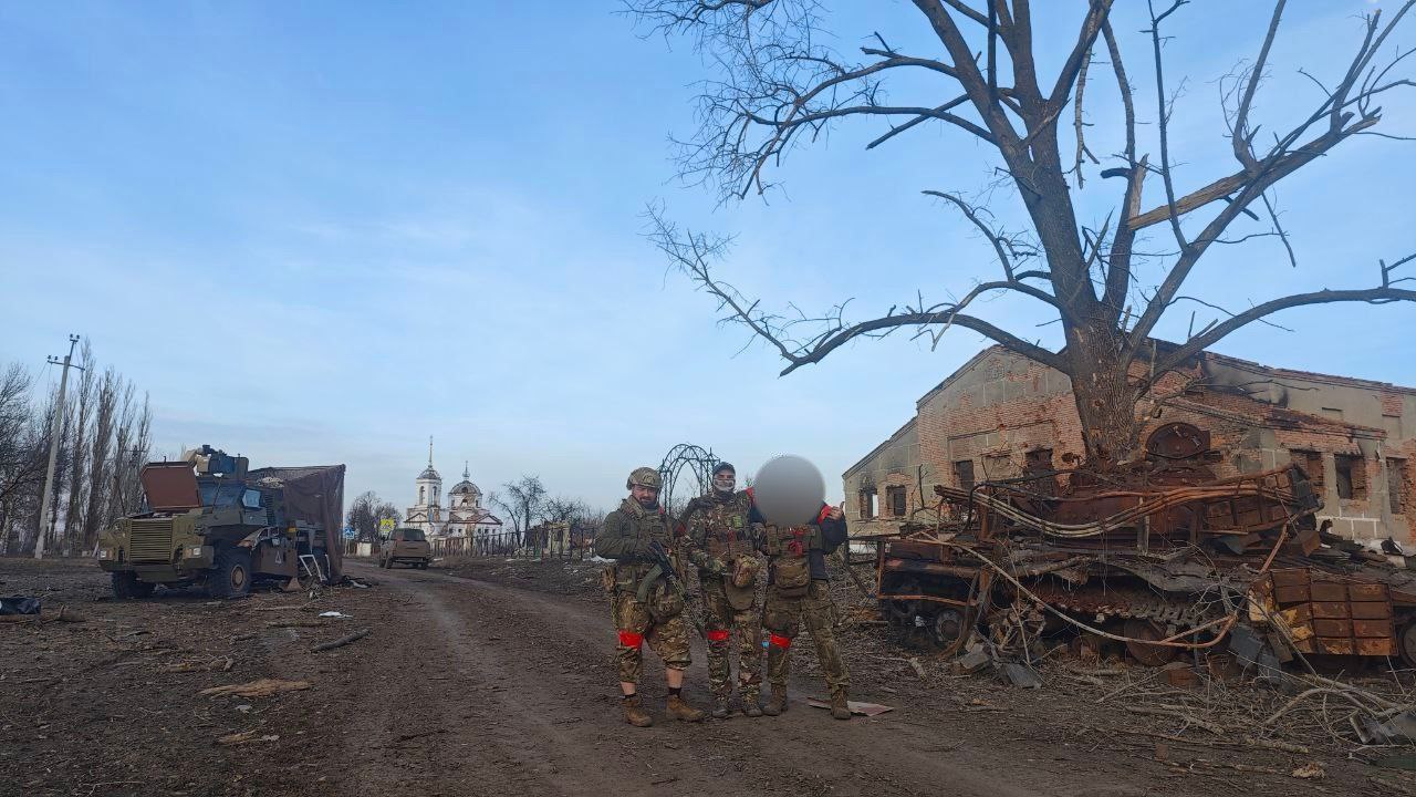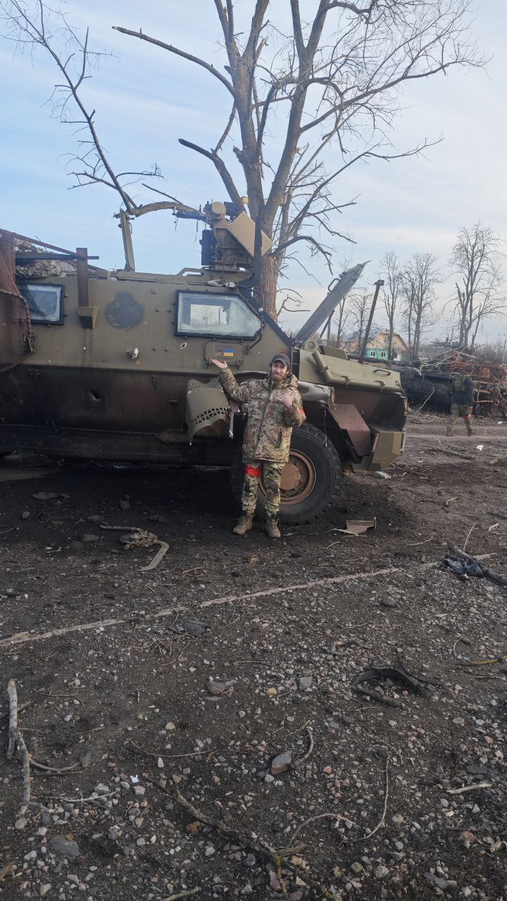 Российские бойцы и трофейный австралийский бронеавтомобиль Bushmaster PMV в н.п. Черкасское Поречное, Курская область.