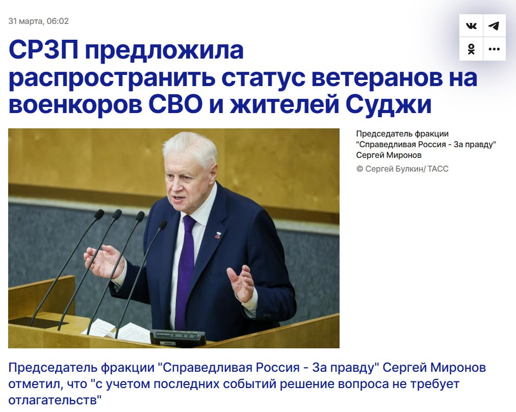 Как я уже неоднократно говорила, жители Суджи и Суджанского района, пережившие оккупацию, а также сопротивлявшиеся врагу в период вторжения ВСУ, должны получить статус ветеранов боевых действий! Это же касается и военкоров, самым непосредственным образом освещающих ход СВО и рискующих буквально своей жизнью. Очень надеюсь, что моя поправка найдет свой отклик не только среди коллег по фракции, но и в Думе в целом!
