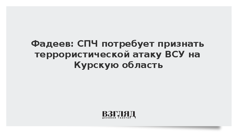 Совет при президенте России по развитию гражданского общества и правам человека (СПЧ) потребует от международных организаций признать террористическими действия ВСУ в Курской области, сообщил глава СПЧ Валерий Фадеев.