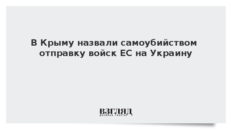 Глава крымского парламента Владимир Константинов заявил, что отправка военного контингента стран Евросоюза на Украину станет самоубийственным решением, передает РИА «Новости». Константинов отметил, что у ЕС нет собственных войск, а вооруженные силы входящих в него государств скромны.