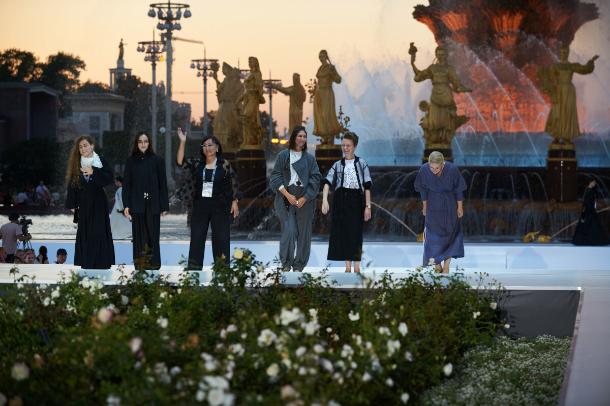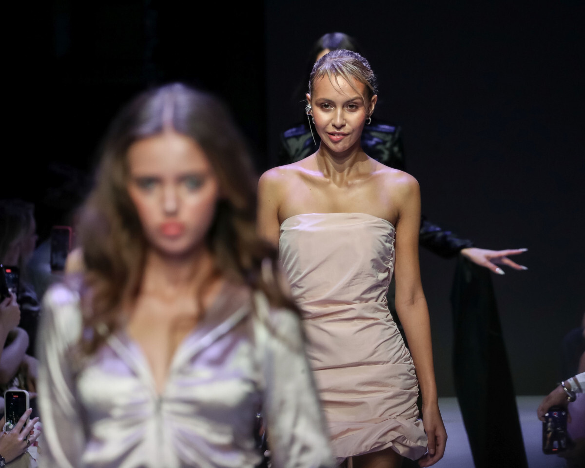 Новая коллекция бренда Solangel представляет модернистское прочтение славянского культурного кода с использованием инновационных дизайнерских решений. В основе концепции — объединение традиционных ремесел и эстетики с авторской технологией инкрустации кристаллами, ставшей визитной карточкой бренда. Вся коллекция — это вечерние наряды, украшенные тонким кружевом, традиционной вышивкой, флористическими мотивами. Каждое изделие вдохновлено природой и символами русского наследия. Мы увидели и платье-березу, и адаптацию народного костюма в мини-платье с перьями, и элегантные наряды в бежевом цвете с принтами в виде шелестящих колосьев.