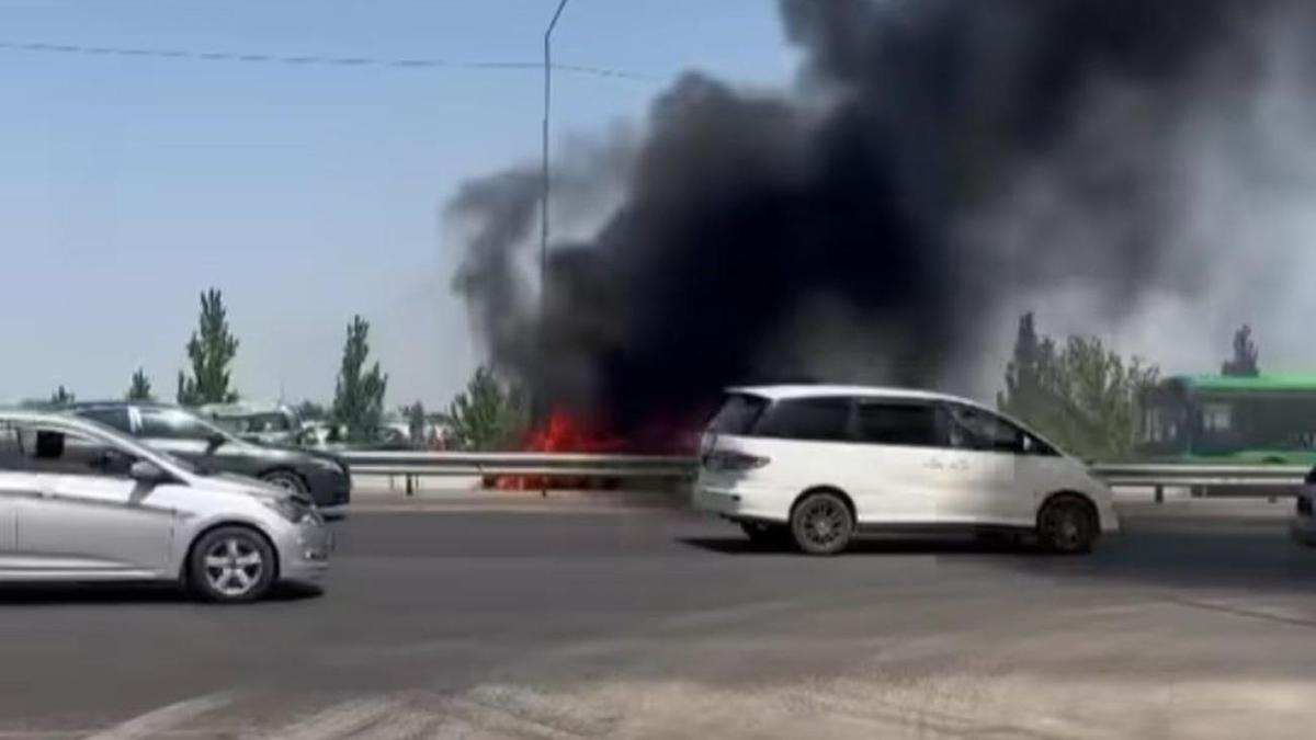 В Telegram-канале kris_p_almata опубликовали несколько видео очевидцев ЧП, которое произошло сегодня, 13 августа, на дороге рядом с оптово-розничным рынком "Алтын Орда". На кадрах видно горящий автомобиль и клубы черного дыма. В это время на дороге зафиксировано активное движение машин.
