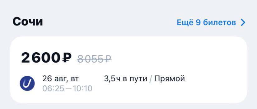 Улететь из Москвы в Сочи можно за 2.600 рублей