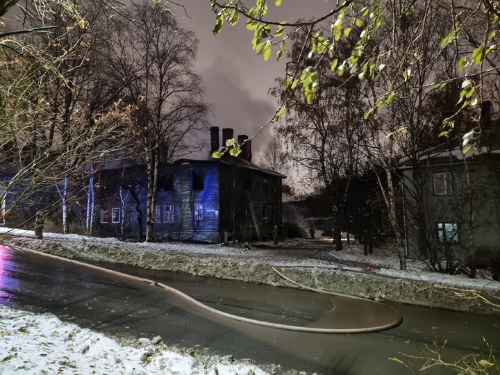 Огонь выжег второй этаж деревянного дома в Петрозаводске