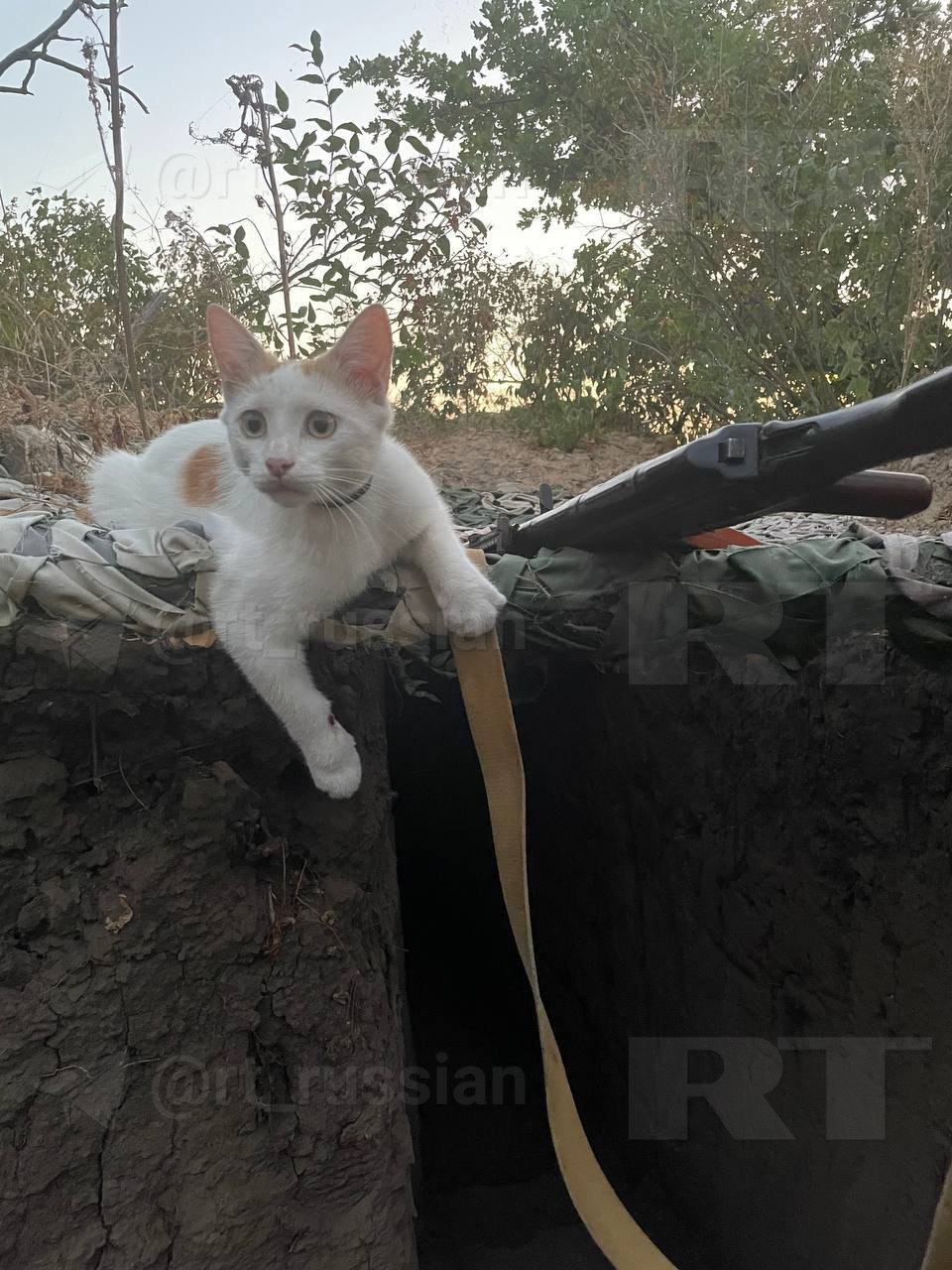 Кот Васька, всю жизнь проживший в блиндаже, неделю пробирался к нашим после осколочного ранения.