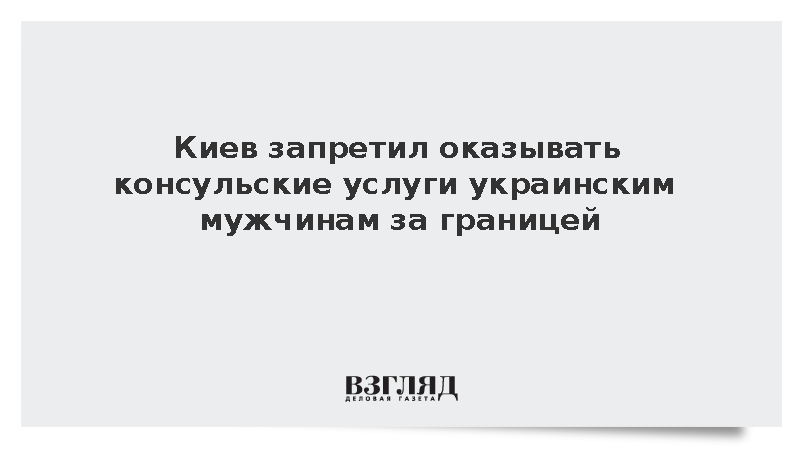 МИД Украины велел не оказывать консульские услуги мужчинам призывного возраста за границей, им можно будет только оформить документы для возвращения на Украину, сообщили украинские СМИ.