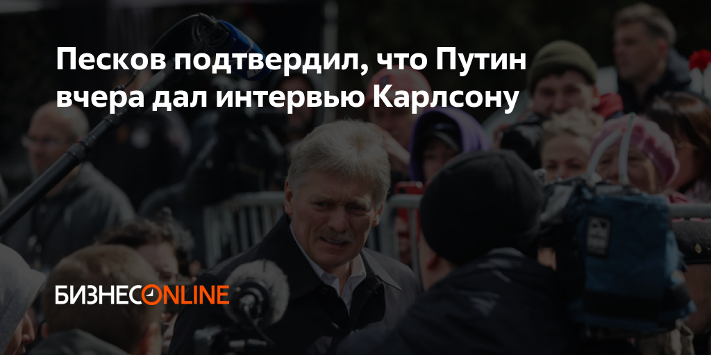 Пресс-секретарь президента РФ Дмитрий Песков подтвердил, что вчера американский журналист Такер Карлсон взял интервью у президента России Владимира Путина. Его слова приводит ТАСС.