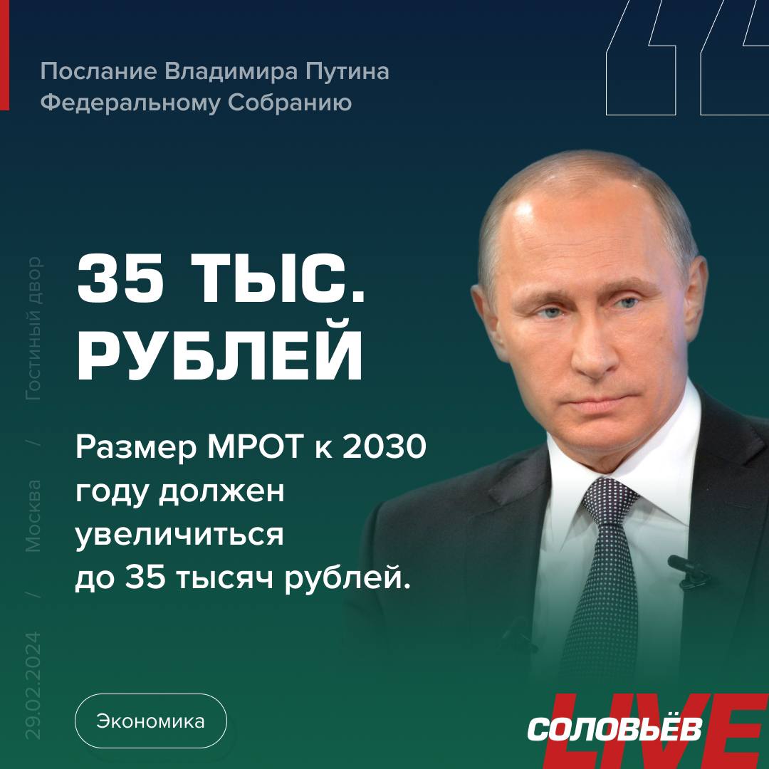 Президент России Владимир Путин о минимальном размере оплаты труда.