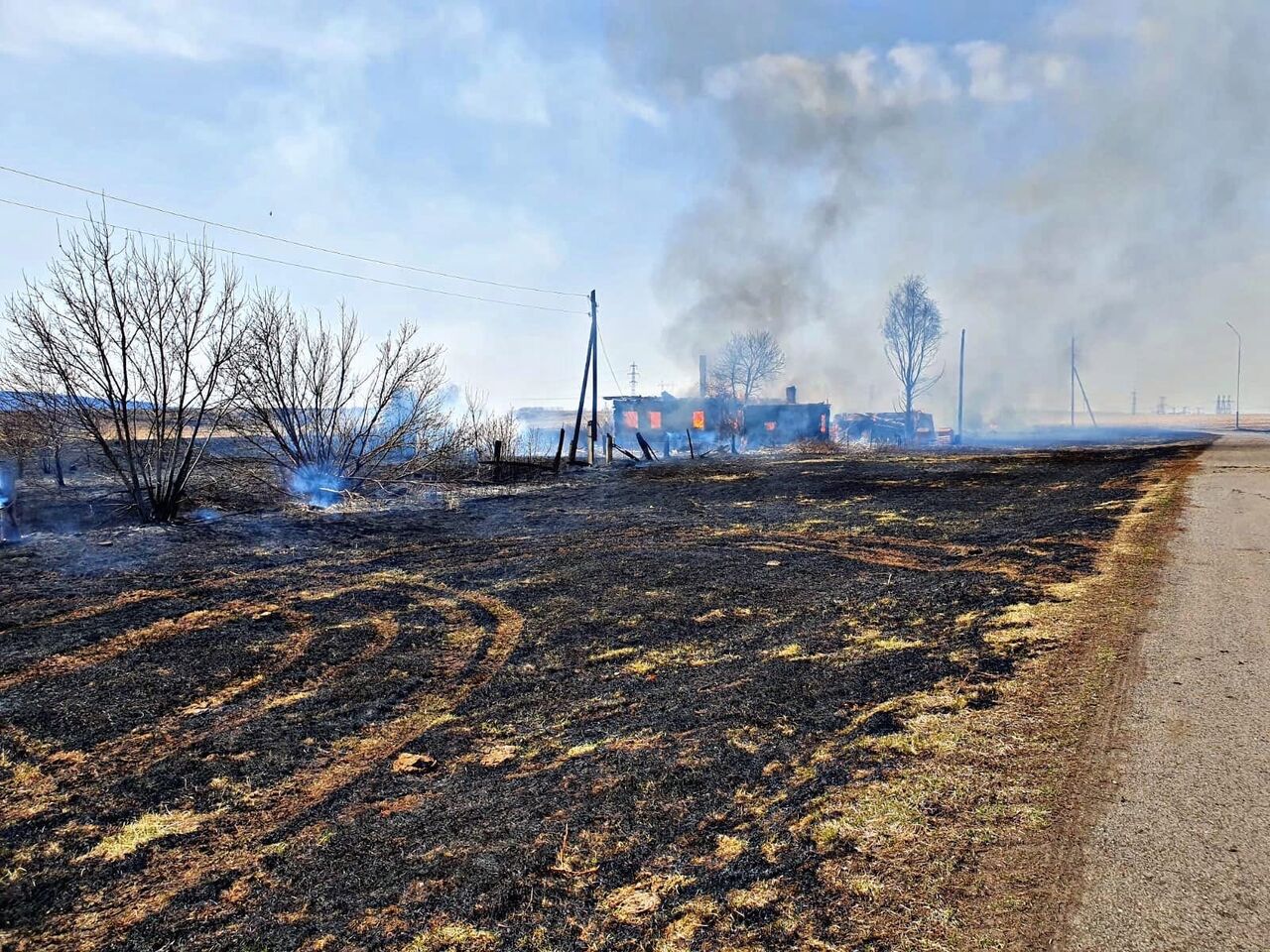 – 8 часов 53 минуты работники пожарной части, а также добровольная пожарная команда боролись с огнем, – говорится в сообщении.