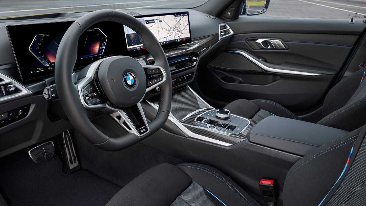 В интерьере тоже есть порция обновок. Седан и универсал получили новое рулевое колесо, другую подсветку (доступны девять цветовых вариантов), иные центральные дефлекторы вентиляции. Стартовое исполнение 330i получило отделку с декором из светлого дерева, опционально доступны варианты с элементами из матового алюминия и пепельно-серого дерева, а для M340i – из углеродного волокна.