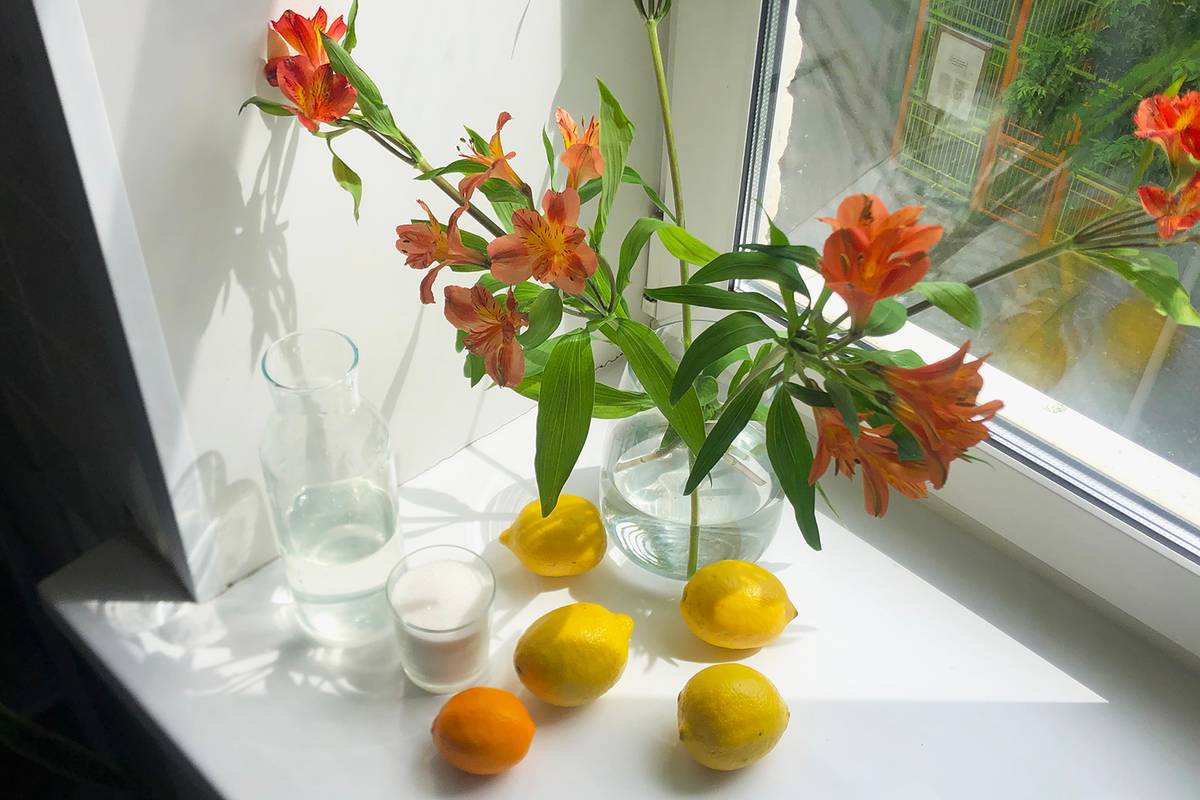Цитрусовые для приготовления подобной граниты можно брать любые: мандарины, апельсины, лаймы. Я взяла четыре обычных лимона и один узбекский — он более ароматный.