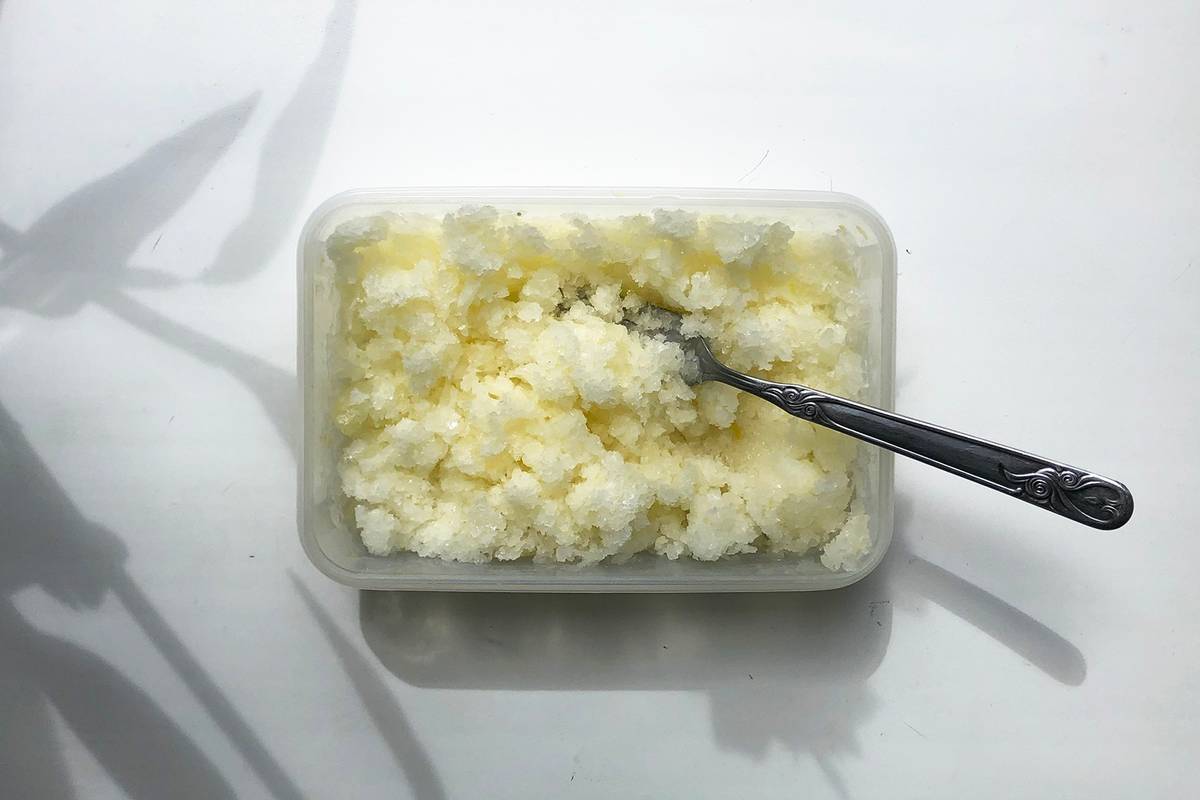 Если не хотите использовать все сразу, соскребите вилкой нужное вам количество, а оставшееся храните в морозилке.