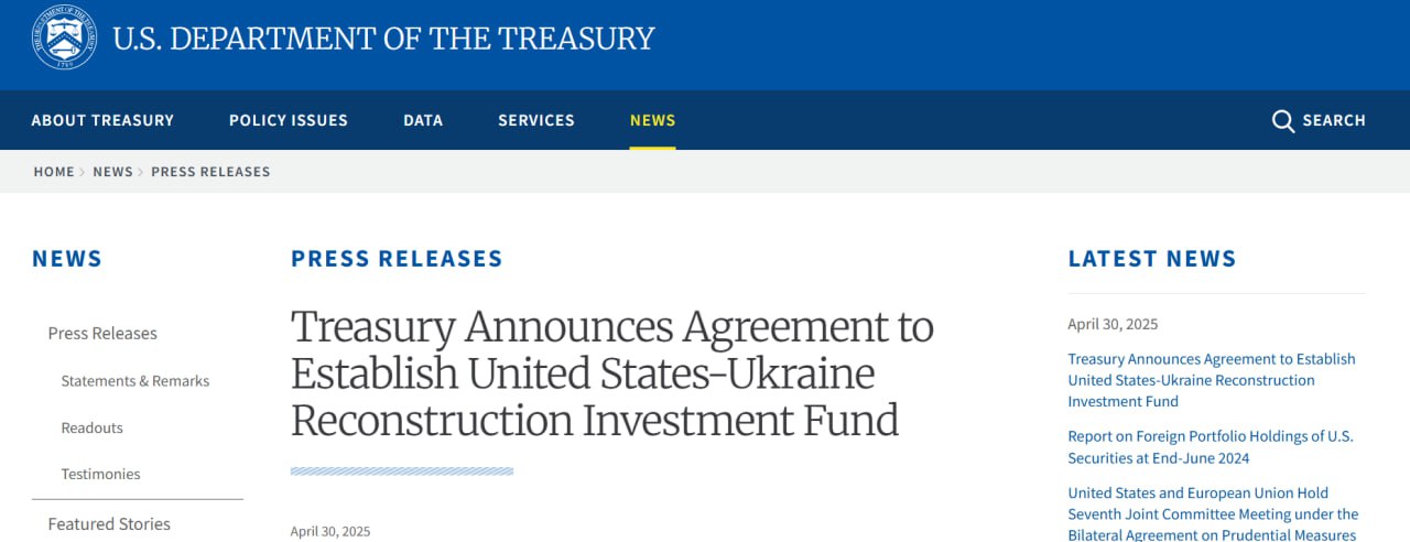 ❗️ Министерство финансов США подтвердило подписание сделки с Украиной по минералам.