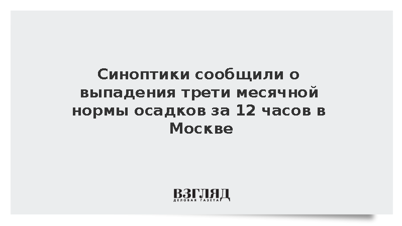 Почти треть месячной нормы осадков может выпасть в Москве за 12 часов, а в Подмосковье этот показатель достигнет примерно 40%, передает ТАСС.