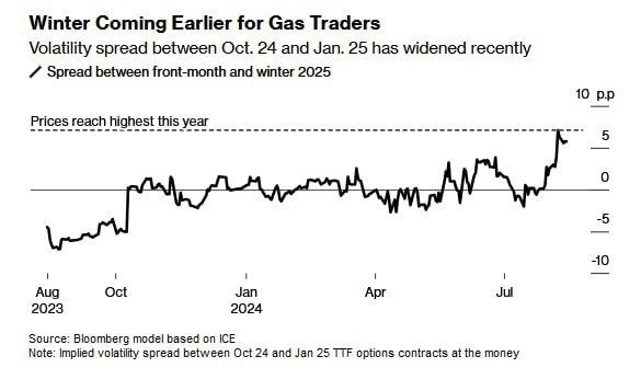 Увеличение стоимости газа в Европе свидетельствует о сохраняющихся опасениях по поводу поставок. Страхование октябрьских контрактов обходится дороже, чем контрактов на середину зимы