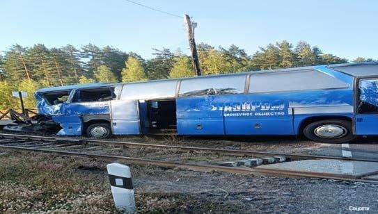 Кадры с места ДТП с пассажирским автобусом и грузовым составом появились в Сети.