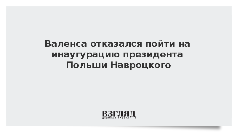 Об отказе Леха Валенсы участвовать в инаугурации Кароля Навроцкого сообщил ТАСС.