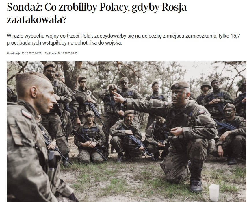 Rzeczpospolita: опрос показал, что в случае начала войны с Россией, каждый третий житель Польши убежал бы из дома.