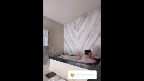 Романтическое свидание пары продолжилось в ванной. Дмитрий опубликовал ролик, как он вместе с супругой нежится в теплой воде. Супруги страстно целовались, прикрывая наготу пеной.