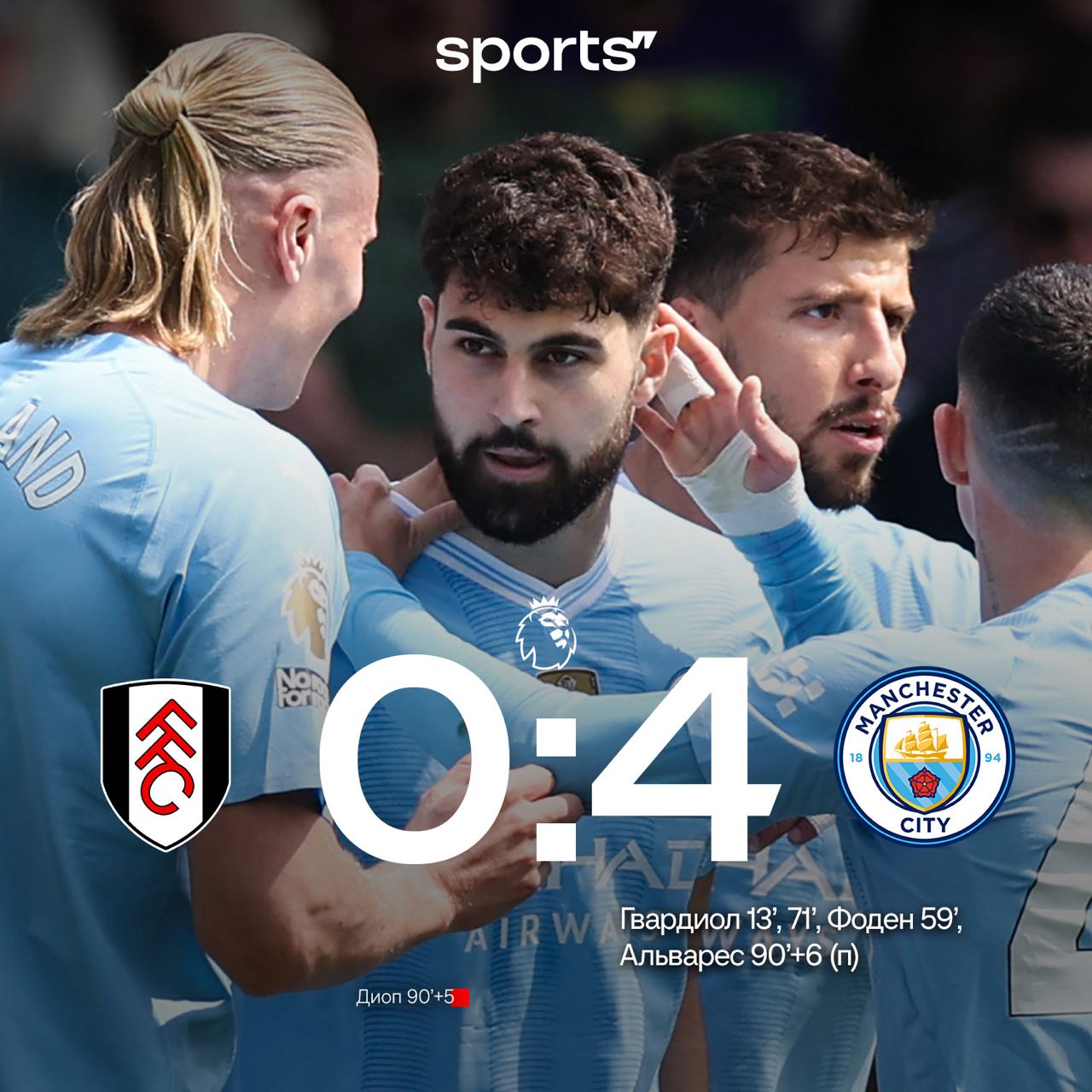 😮 Дубль Гвардиола «Фулхэму» помог «Сити» выйти на первую строчку АПЛ: Пеп обгоняет Артету на 2 очка за 2 тура до конца чемпионата