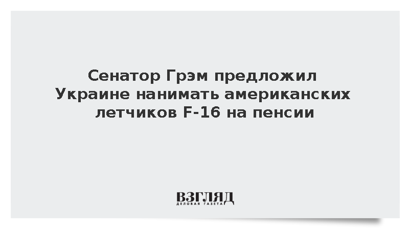 По его словам, пока украинские летчики не закончили обучение, заменить их на время могли бы военные пенсионеры НАТО и власти США готовы в этом помочь, передает «Российская газета». Грэм добавил, что только так Киев сможет воспользоваться переданными от союзников самолетами F-16.