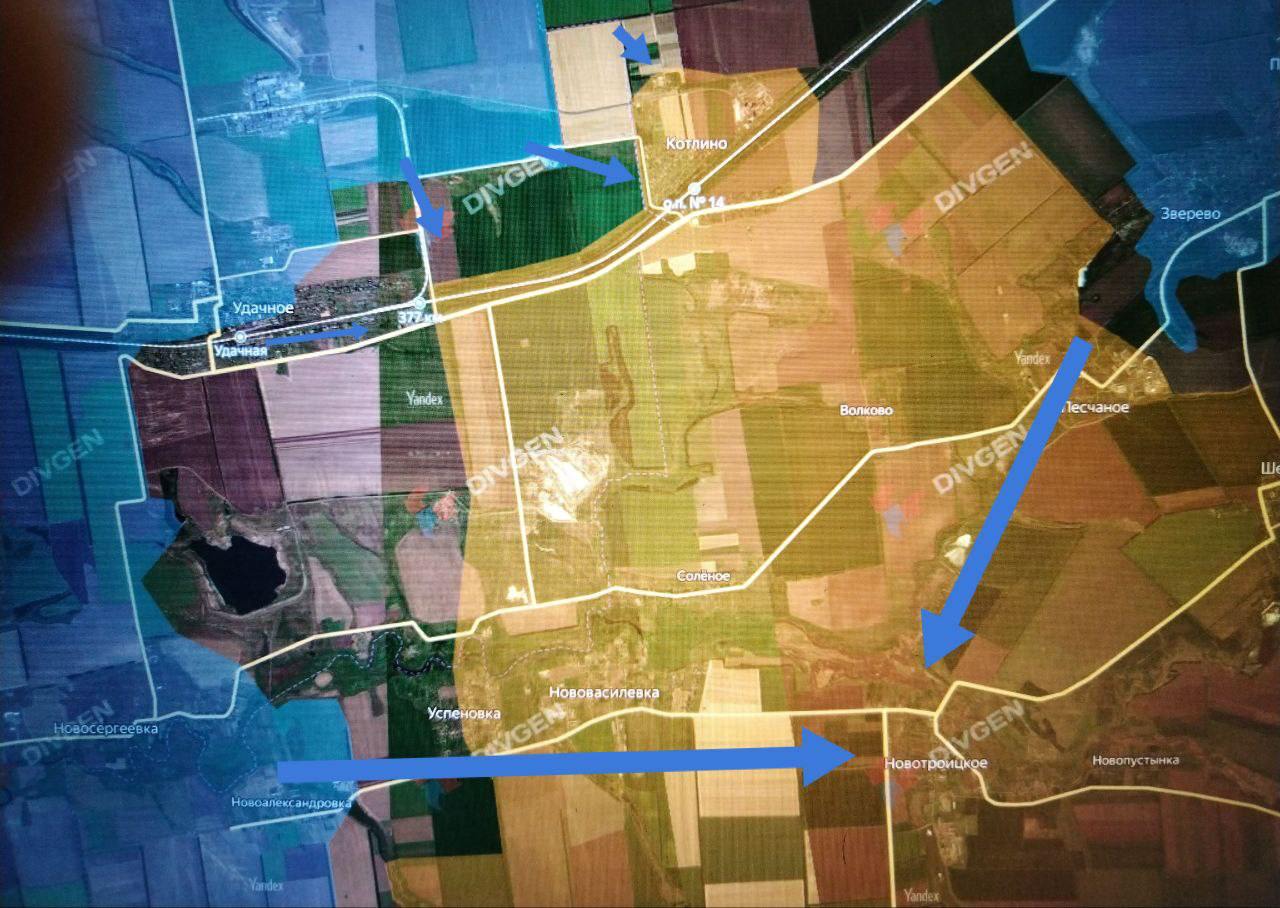 Судя по обстановке, складывающей на левом фланге Покровского (Красноармейского) направления, в результате переброски на этот участок и вообще в район Покровско-Мирноградской агломерации боеспособных резервов ВСУ, напрашивается, как минимум, вывод, что противник пытается ликвидировать наше продвижение до Новотроицкого. Поэтому и давит в Песчаном и Успеновке, чтобы вынудить отойти или окружить наши войска севернее.