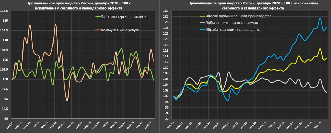 За три года промышленность выросла на 6.9% (к фев.22), а за пять лет рост на 10.9% (к фев.20), за последние три месяца (дек.24-фев.25 к дек.23-фев.24) российская промышленность выросла на 3.8% г/г, +7.2% за три года и +15.5% за пять лет (к дек.19-фев.20).