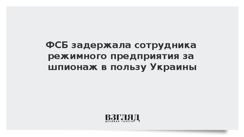 Сотрудники ФСБ задержали работника режимного предприятия за шпионаж в пользу спецслужб Украины. В Центре общественных связей ведомства заявили, что подозреваемый, гражданин России 1980 года рождения, передавал украинским спецслужбам информацию закрытого характера, сообщает ТАСС.