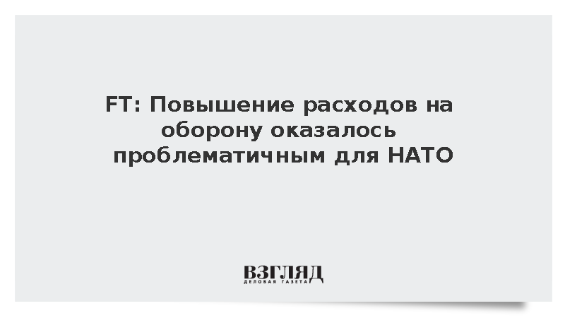 Повышение оборонных расходов до 5% от ВВП вызывает сложности для стран НАТО, передает РИА «Новости». Как отмечает Financial Times со ссылкой на слова европейского дипломата, решение о таком увеличении оказалось проблематичным для большинства государств альянса.