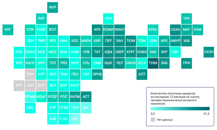 Рейтинг охватывает все 85 регионов России и формируется с учётом интенсивности ипотечного кредитования, его доступности и надёжности исполнения обязательств.